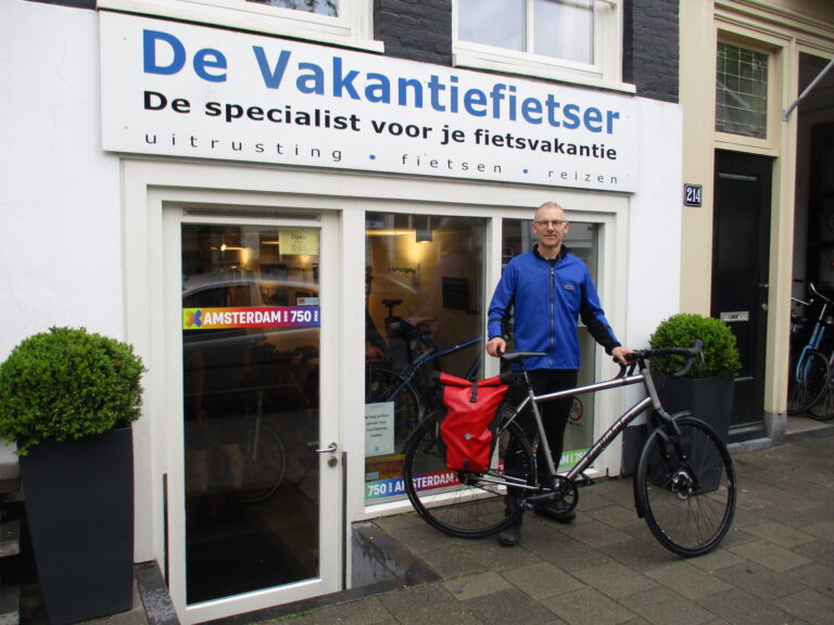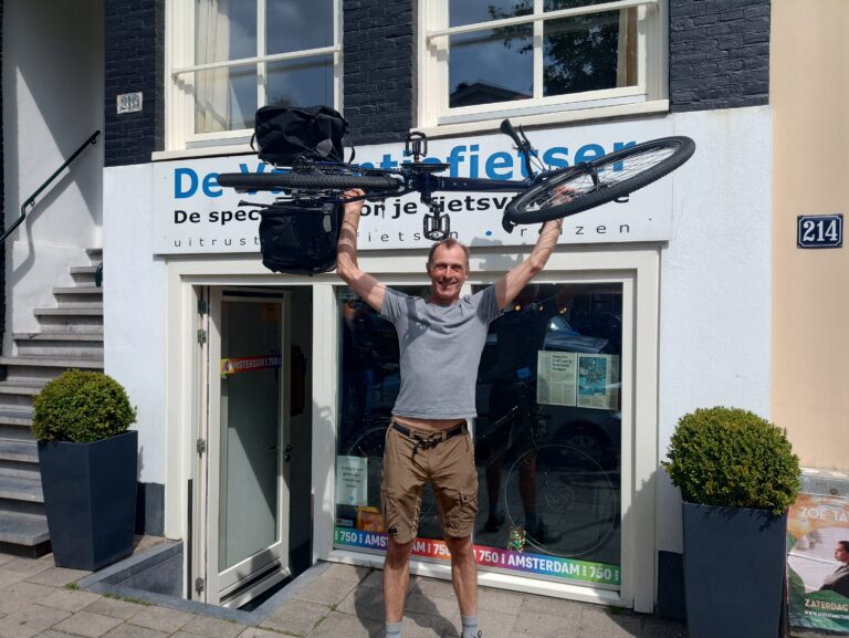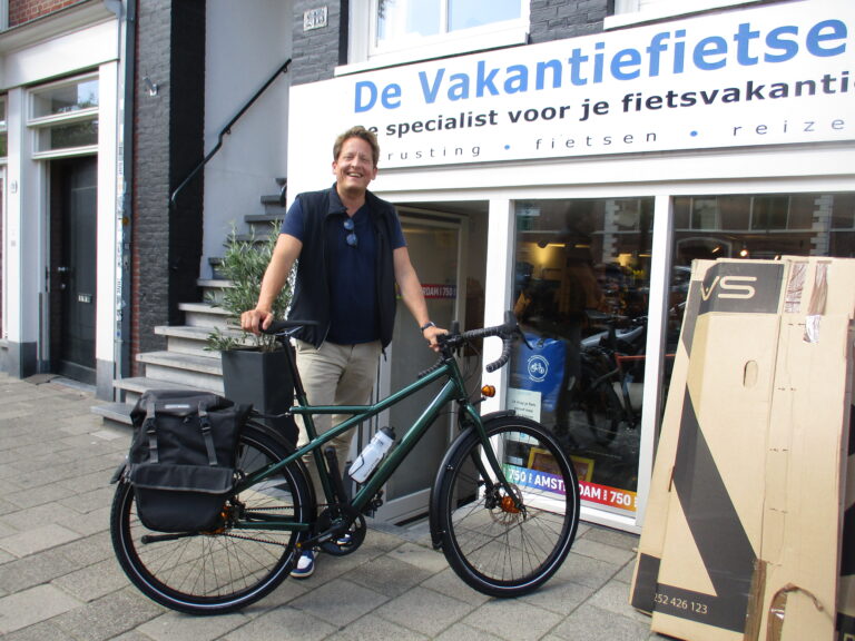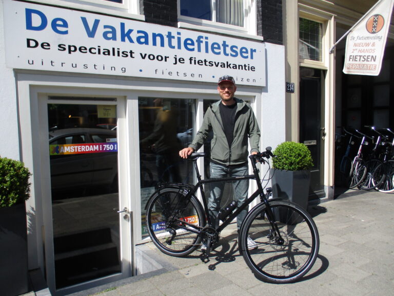 Luke kwam naar onze winkel, voor een fiets om binnen een week naar Wenen mee te fietsen voor zijn eerste fietsreis. Gelukkig hebben wij ook fietsen op voorraad! Zijn oog is gevallen op deze mooie Tout Terrain Amber Road. Wij wensen hem heel veel avonturen toe.
