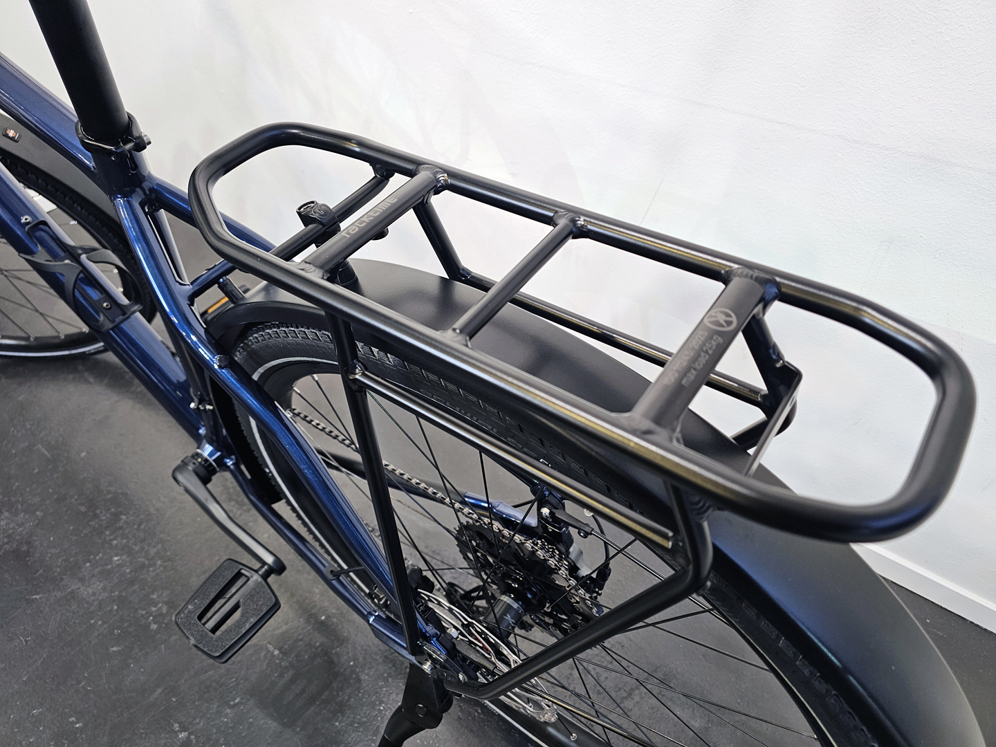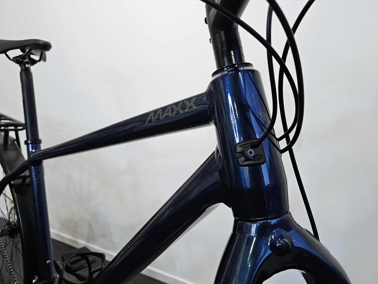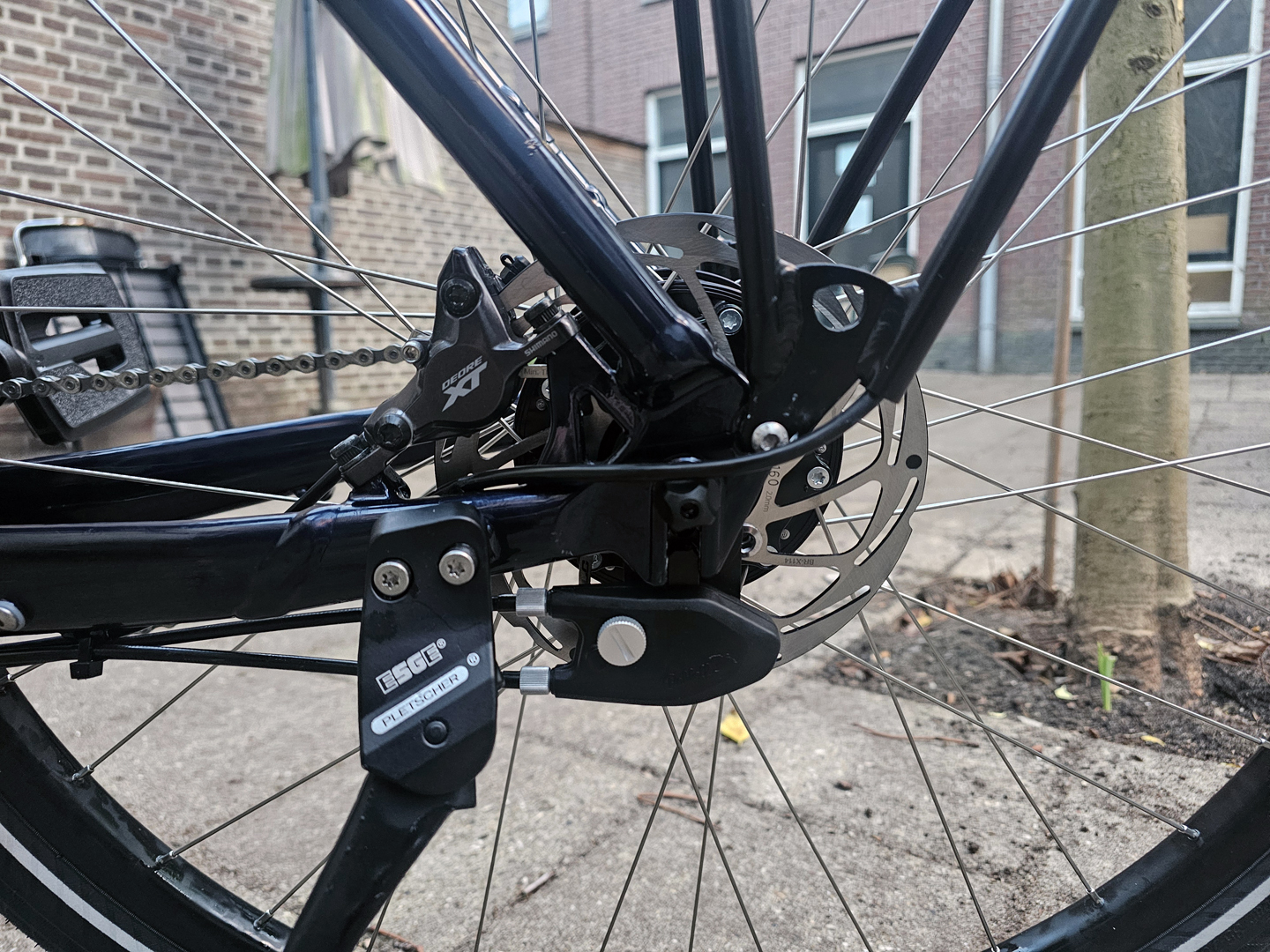 Collega’s Chris en Rik hebben leveranciers gevraagd om een fiets te bouwen volgens onze specs. Het populaire merk Maxx wilde wel met ons in zee gaan. We hebben bewust de verlichting weggelaten. Waarom? Nou, omdat je tegenwoordig ook erg goed oplaadbare accuverlichting hebt die veel minder kost dan een naafdynamo en koplamp. De Shimano schijfremmen zijn dezelfde als die door idworx worden gebruikt. Het verzet van de Shimano Cues groep is zo gekozen dat je met bagage makkelijk een steile helling kunt nemen.