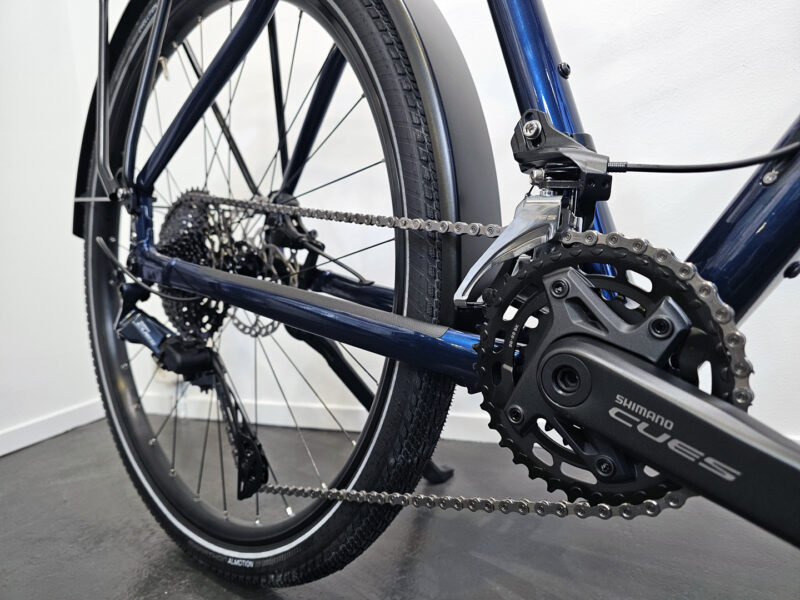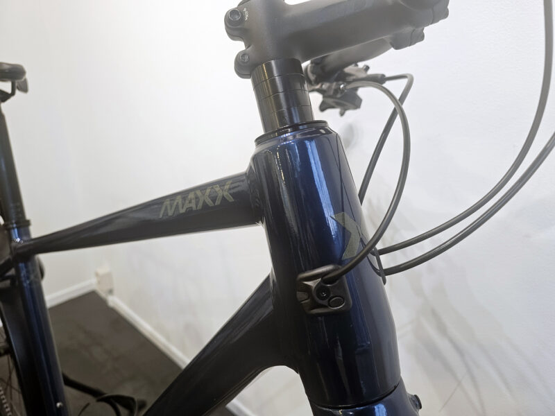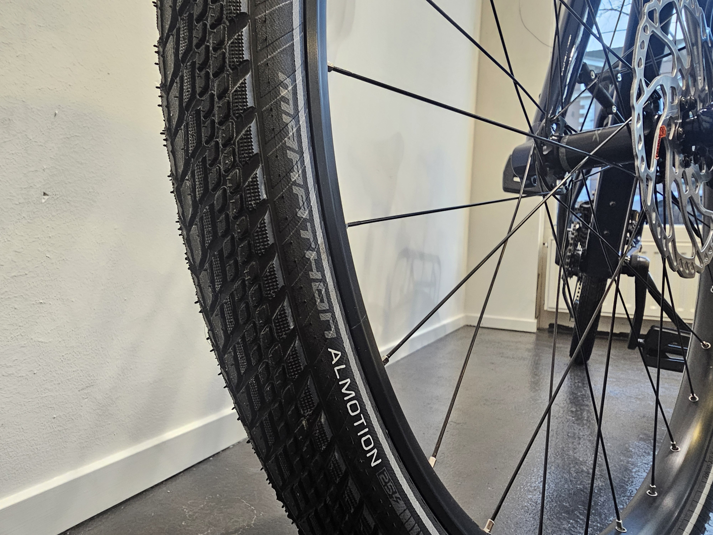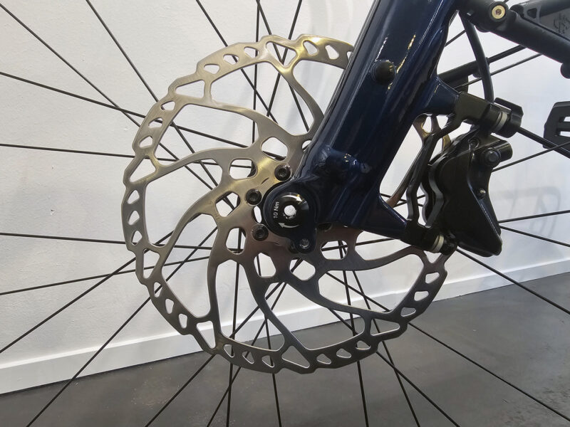 Collega’s Chris en Rik hebben leveranciers gevraagd om een fiets te bouwen volgens onze specs. Het populaire merk Maxx wilde wel met ons in zee gaan. We hebben bewust de verlichting weggelaten. Waarom? Nou, omdat je tegenwoordig ook erg goed oplaadbare accuverlichting hebt die veel minder kost dan een naafdynamo en koplamp. De Shimano schijfremmen zijn dezelfde als die door idworx worden gebruikt. Het verzet van de Shimano Cues groep is zo gekozen dat je met bagage makkelijk een steile helling kunt nemen.