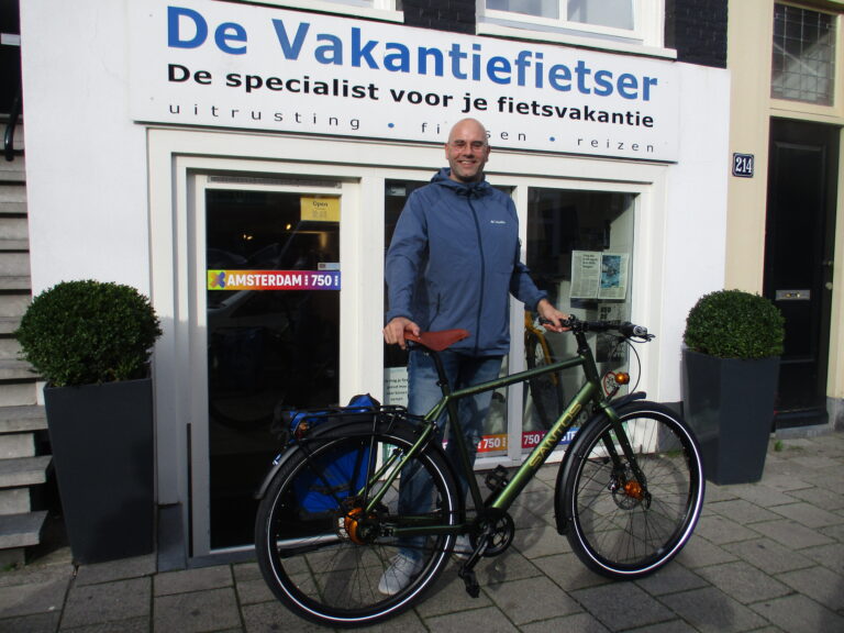 Luke kwam naar onze winkel, voor een fiets om binnen een week naar Wenen mee te fietsen voor zijn eerste fietsreis. Gelukkig hebben wij ook fietsen op voorraad! Zijn oog is gevallen op deze mooie Tout Terrain Amber Road. Wij wensen hem heel veel avonturen toe.
