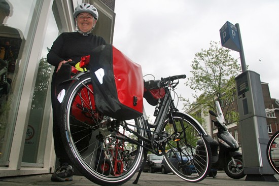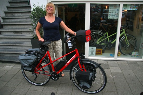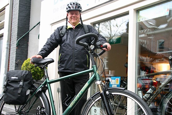 Roland met zijn Santos Travelmaster met rode Rolhoffnaaf en riem.