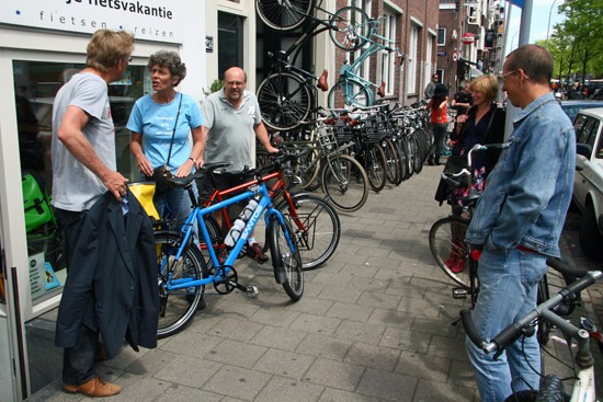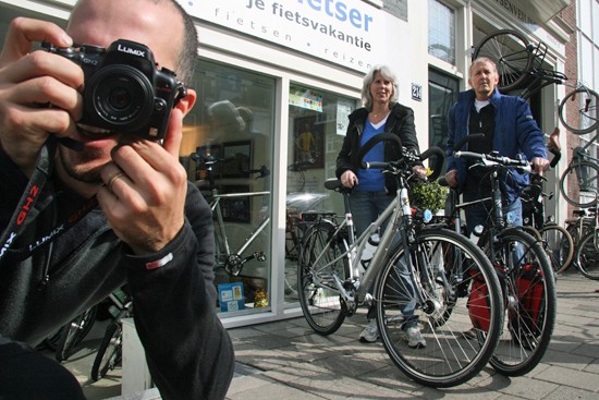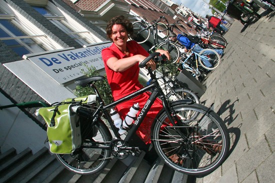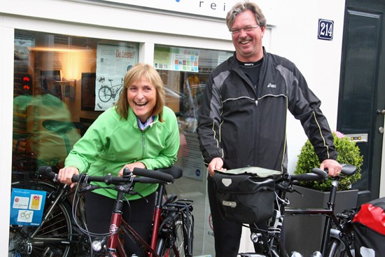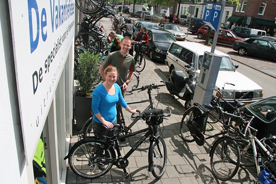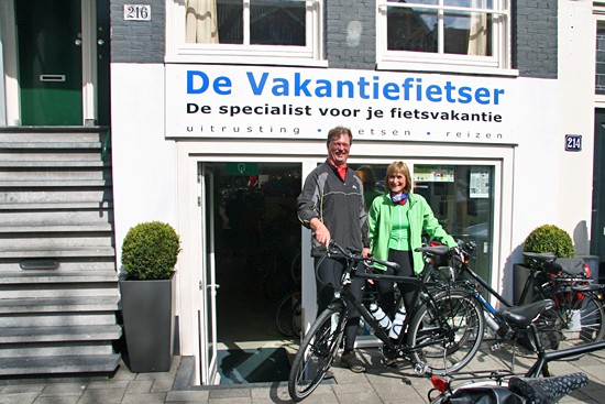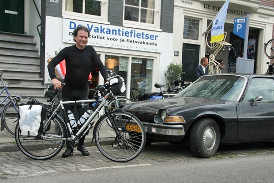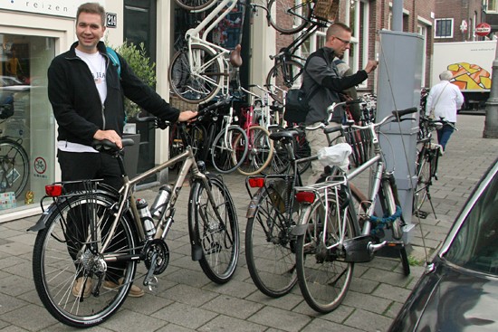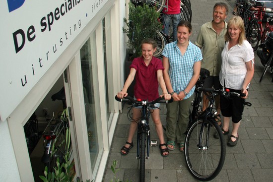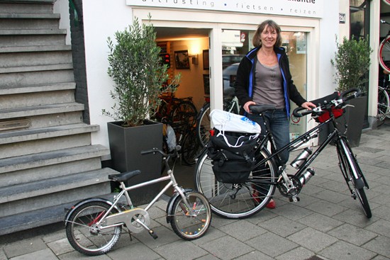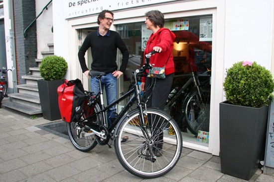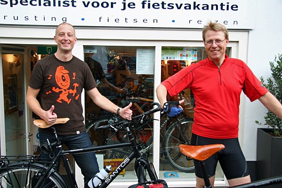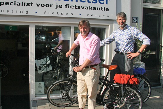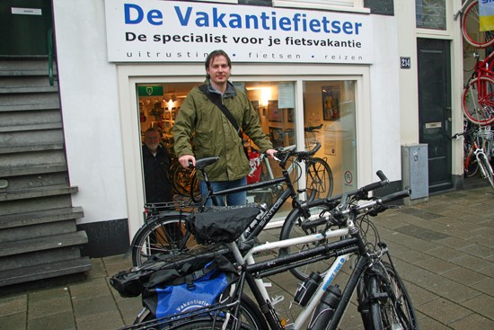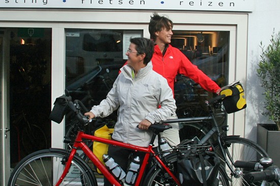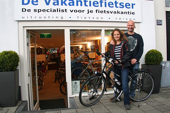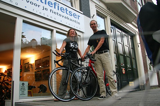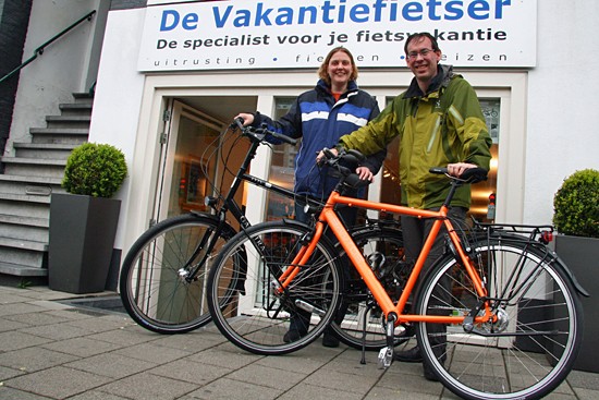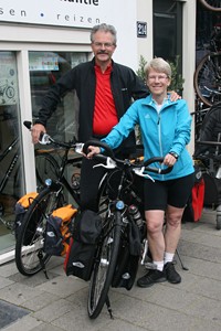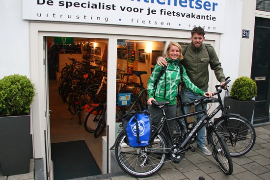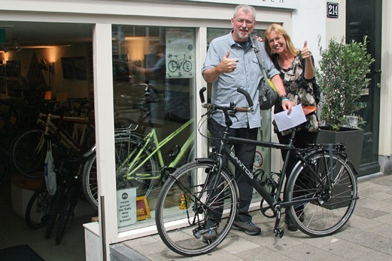 Hidde uit Joure en Ineke uit Utrecht. Nee, ze hebben geen relatie, het is toeval dat ze op hetzelfde moment hun fietsen ophaalden. Beide een fiets met Rohloff en Riem. Hij een zwarte Koga zij een witte Santos.
