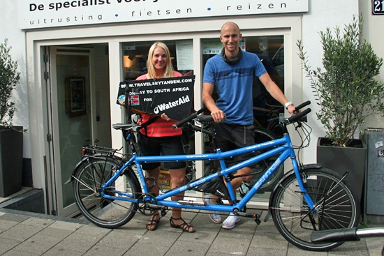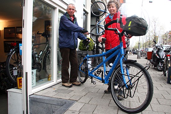 We leenden ze onze winkeltandem en ze waren meteen verliefd. Hun ‘oude’ tandem is nu per post naar Zweden en ‘onze’ Santos Double Travel winkeltandem is onderweg naar Zuid Afrika.