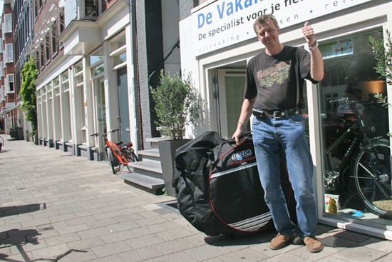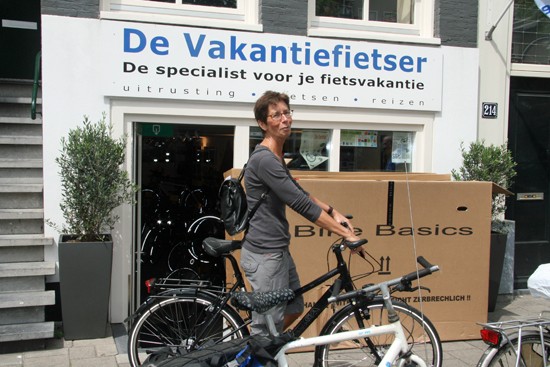 Ursula uit Polen haalde haar fiets op en vertrekt op zondag vanaf Schiphol. De fiets van Frank (die erachter staat) wordt over vier weken naar Spanje verstuurd.