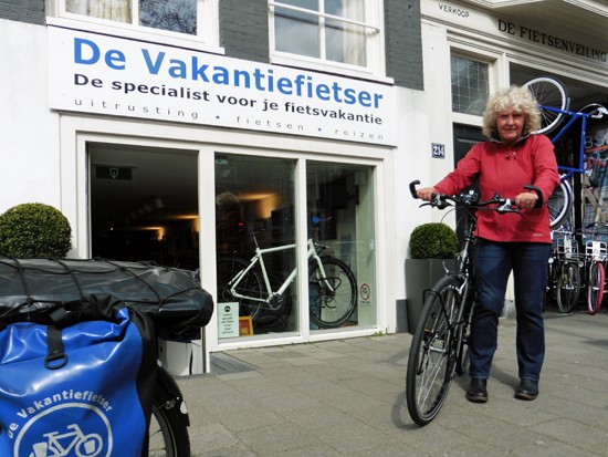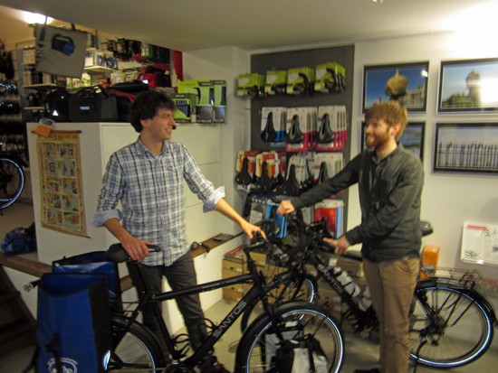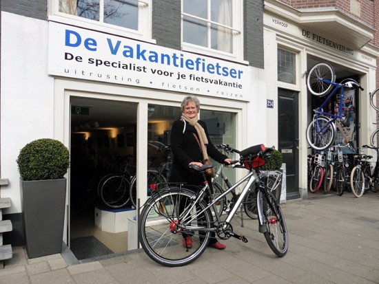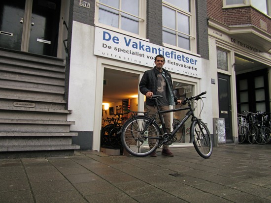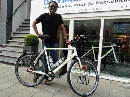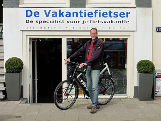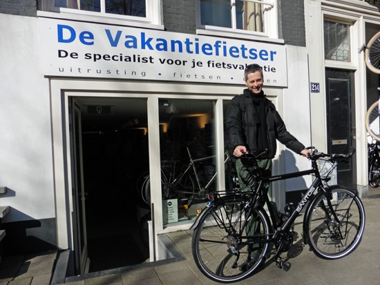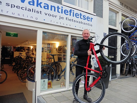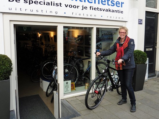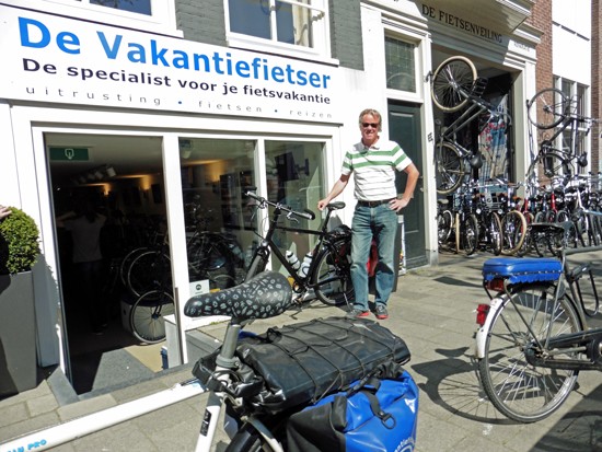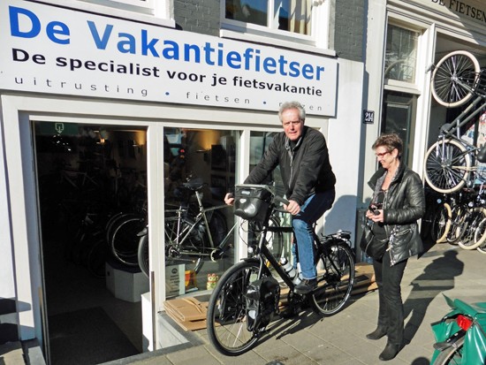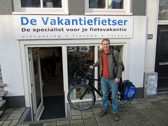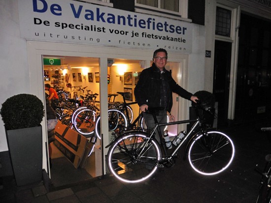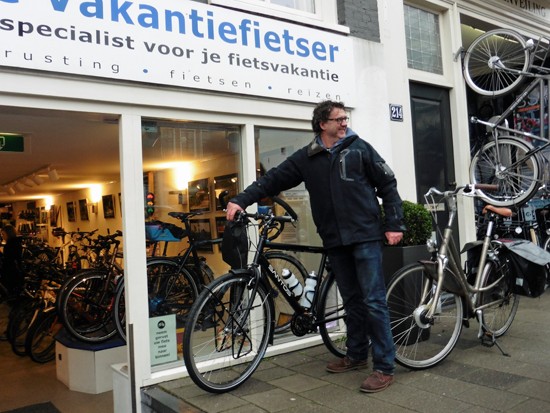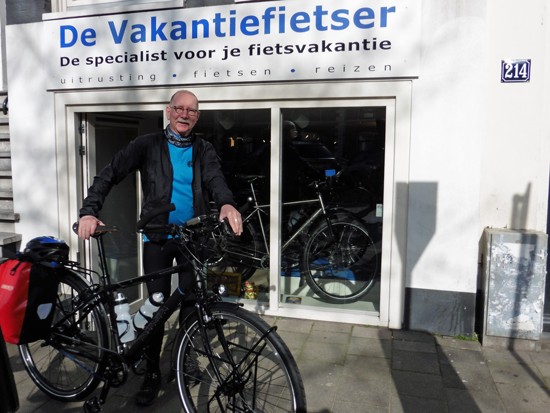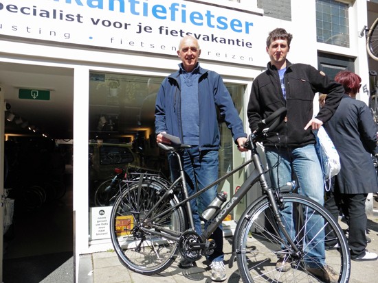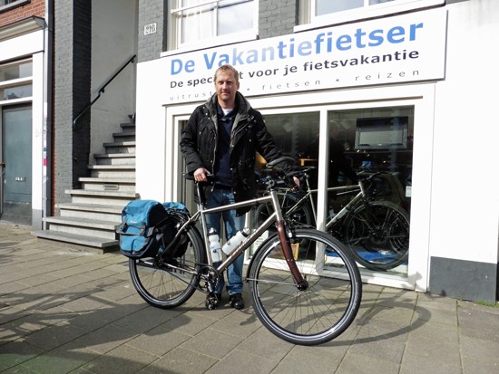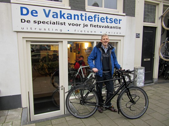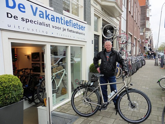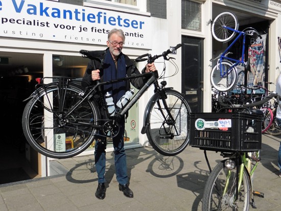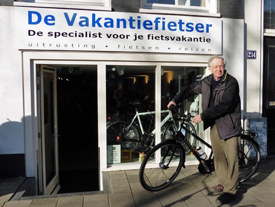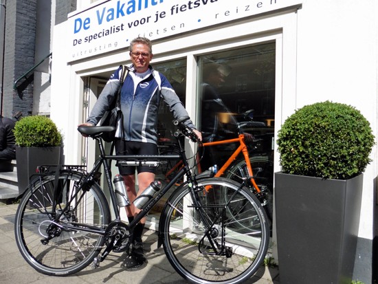Cornelis met ons showroomodel Santos Travelmaster 2.8 alu met Rohloff riem en een grote naafdynamo.