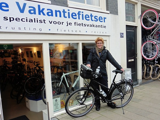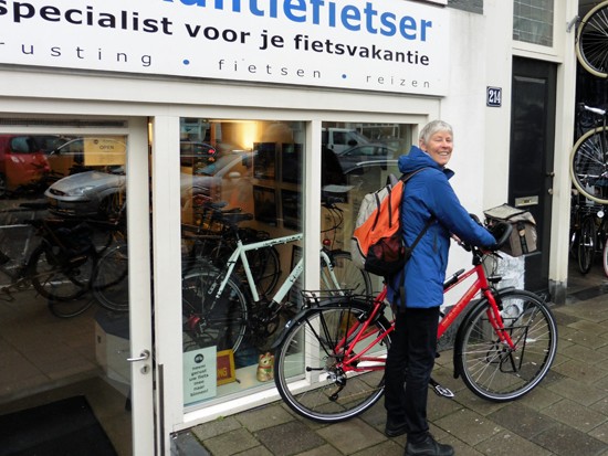 Hennie met haar Santos Travelmaster in de populairste kleur voor deze damesfiets: rood