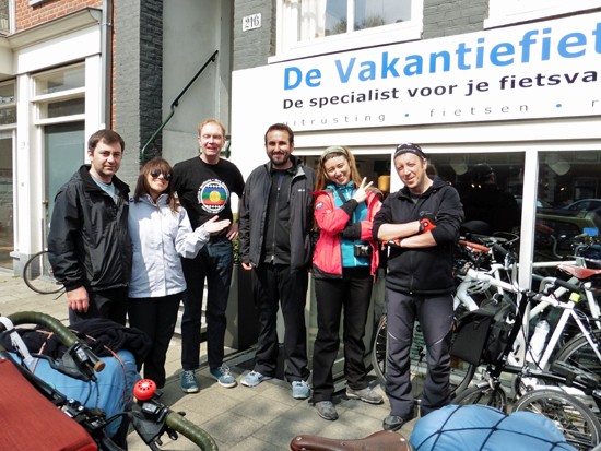 Turkse klanten van ons filiaal in Istanbul. Zij zijn naar Amsterdam gevlogen en fietsen naar Frankfurt. Vandaar vliegen zij weer terug naar Istanbul.