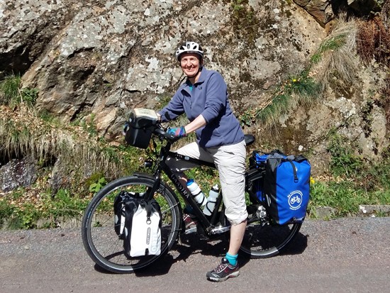 Elma op haar Gaastra onderweg naar Barcelona. Ze laat nog even weten: “Lekker stabiel, niks geen gezwabber. Jan wordt ‘jaloers’ wilt ook een nieuwe fiets.”
