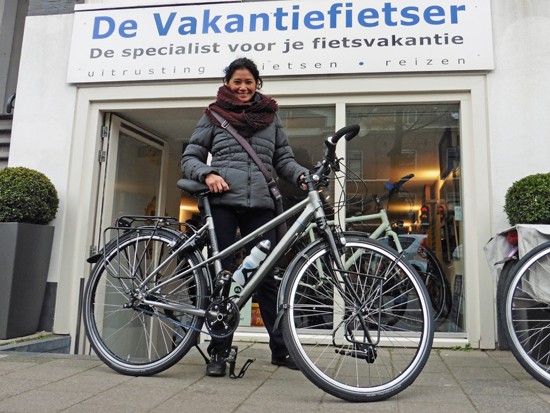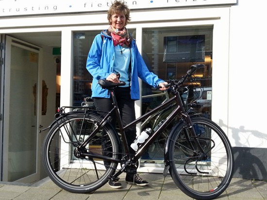 Judith met haar Koga Signature. Na de Rohloff met riem, toch maar wat blij met de goede SON verlichting.
