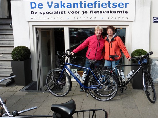 Minke en Joke. Joke met een Koga Traveller, Minke met een Santos Travelmaster.