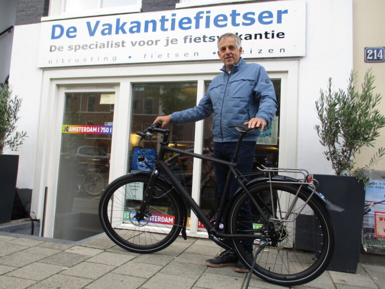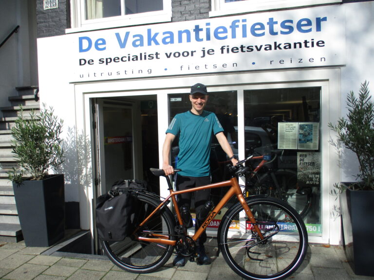 Luke kwam naar onze winkel, voor een fiets om binnen een week naar Wenen mee te fietsen voor zijn eerste fietsreis. Gelukkig hebben wij ook fietsen op voorraad! Zijn oog is gevallen op deze mooie Tout Terrain Amber Road. Wij wensen hem heel veel avonturen toe.