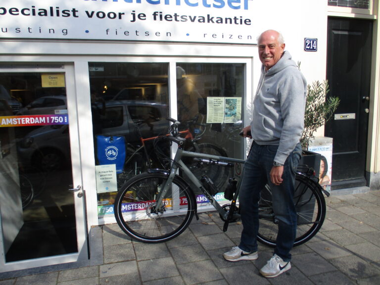 Jan is zo blij met zijn Koga WTS dat hij er helemaal mee naar huis gaat fietsen. Dat doe je niet zomaar; hij komt namelijk uit Amsterdam.