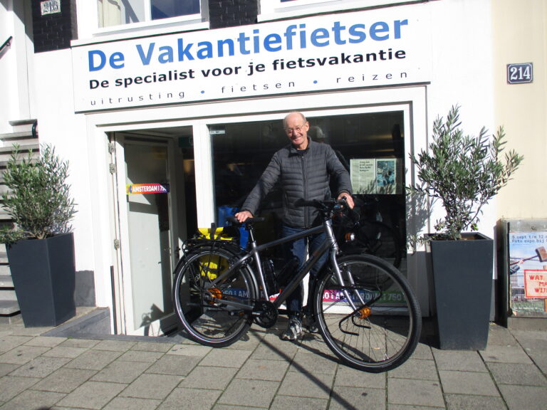 Gerard gaat eerst naar Praag fietsen en later wellicht in Azië. Hier met zijn Maxx Roadmaxx met racebocht.