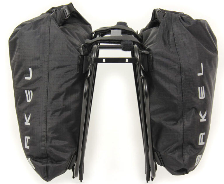 Heb je al een bagagedrager op je fiets of kun je echt niet zonder je haardroger, dan is het helemaal niet zo’n gek idee om een lichtgewicht drager (Tubus Vega of Ortlieb Quick Rack) te combineren met -smalle- achtertassen.