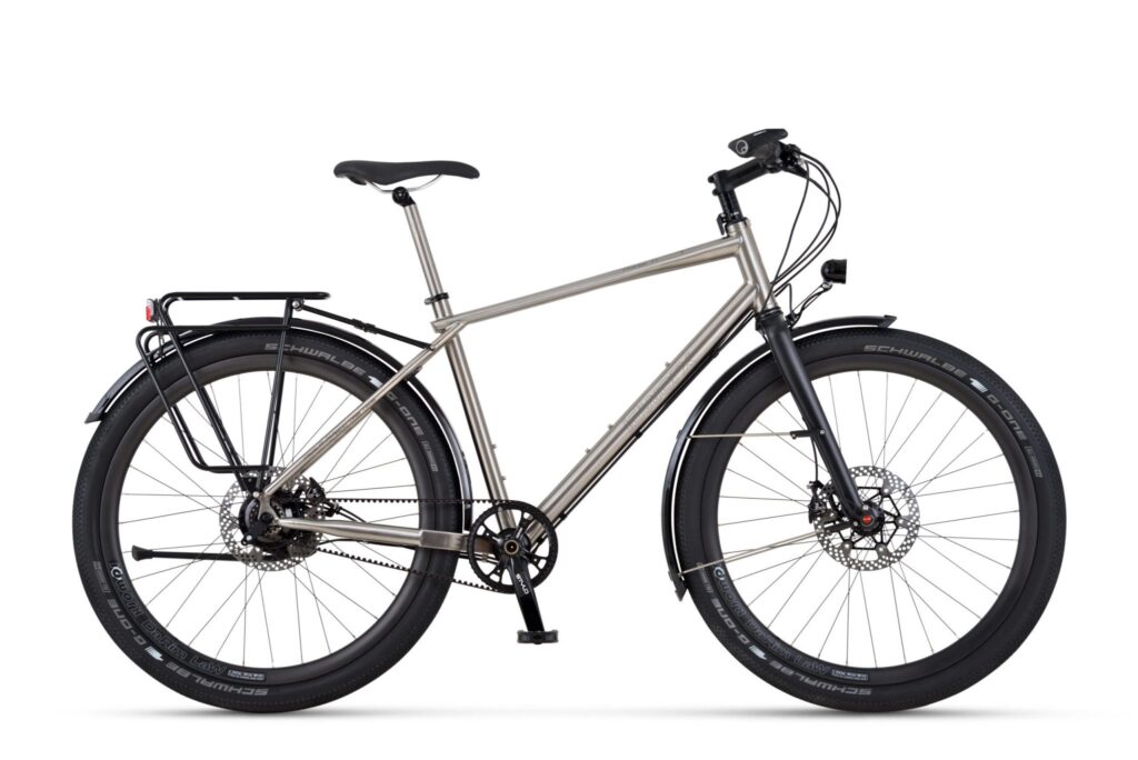 Verder kunnen we de Wachtbergs leveren zonder verlichting en dynamo en met lichtere handvatten. Zo wordt de fiets nog eens 950 gram lichter.