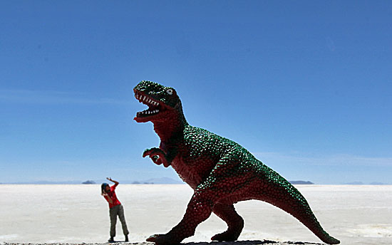”Ach, hier maakt het niets uit. Deze zoutvlakte is één grote weg„, verdedigt hij zich.