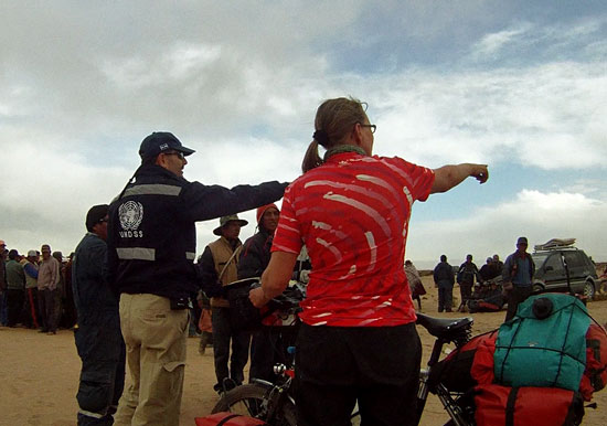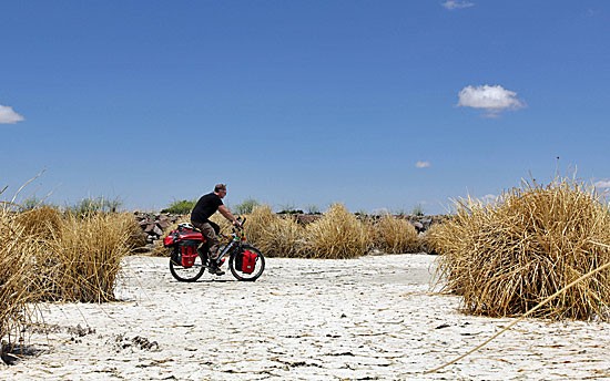 Per dag komen we slechts een paar auto’s tegen. En dat verbaast mij niets, want er zijn bijna geen dorpjes en het wegdek is soms erg slecht. Later blijkt waarom. Het is een van de weinige keren dat ik spijt heb geen vering op mijn Koga te hebben. Met mijn knoetharde leren zadel worden de kuilen en bulten helaas uitstekend doorgegeven aan mijn lijf. We verlagen de bandendruk, zodat we daar wat comfort van hebben. Het onverharde wegdek heeft veel weg van een oneindige ribbenkast. Mijn achterwiel wipt omhoog, terwijl mijn voorwiel op hetzelfde moment in een kuil zakt. Ik wip van mijn zadel, maar mijn voorwiel wordt een fractie later omhoog geduwd door een bult en mijn achterwiel die zakt juist weg in een kuil. Ik klap weer terug in het zadel om even later weer gelanceerd te worden. Als dat vijftig achter elkaar gebeurt ben ik al bijna murw gebeukt en ga op de trappers staan terwijl mijn fiets als een wip onder mij heen en weer beweegt. Ik voel mij net een rodeocowboy.