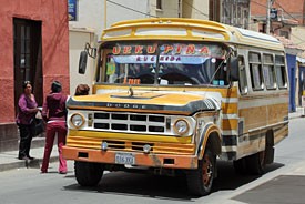 Een oude Dodge-bus komt in de smalle straatjes niet tegen de steile helling op. Hij zigzagt eerst omhoog maar na twintig meter heeft de motor niet genoeg tractie en staat de bus stil. De chauffeur geeft gas, het roet spuit uit de uitlaat, maar hij krijgt hem niet vooruit. Een stuk of twintig passagiers stappen uit en pas dan lukt het de chauffeur zijn oude bus naar boven te rijden. De passagiers worden vergast op stinkende uitlaatgassen, stappen boven weer in en continueren hun reis.