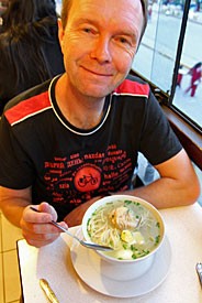 Het eerste uur zijn we er scherp op om hem te verbeteren, maar geven het daarna op. Typisch zo’n geval dat je in veel landen ziet waar mensen Engels leren van een lokale leraar die zelf een slechte uitspraak heeft. Met als resultaat dat in de loop van de jaren honderden leerlingen datzelfde ‘spraakgebrek’ overnemen. Kom op, huur eens een native speaker in zou ik zeggen!