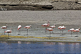 Een groot deel van het stoffige traject hebben we uitzicht op een traag stromende rivier waar we flamingo’s zien foerageren. Die hadden we hier op 4.000 meter hoogte niet verwacht. Wat is de natuur soms toch wonderlijk.