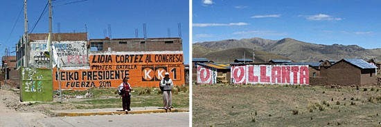 ‘Keiko 2011’ staat met grote letters op blinde muren gekalkt. Of ‘Ollanta!’.