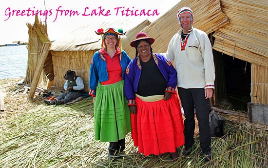 Nou ja, ondanks de domper van de vuilnisbelt en de lijklucht, dompelen we ons na een rustdag onder in de mystiek van het magische Titicacameer op 3.830 meter hoogte. We gaan met een boot het meer op voor een bezoek aan de eilandengroep Uros. Al ver voor het inca tijdperk leefden de Aymara-vissers en jagers op drijvende rieteilanden. Ook hun boten maakten en maken ze van riet.