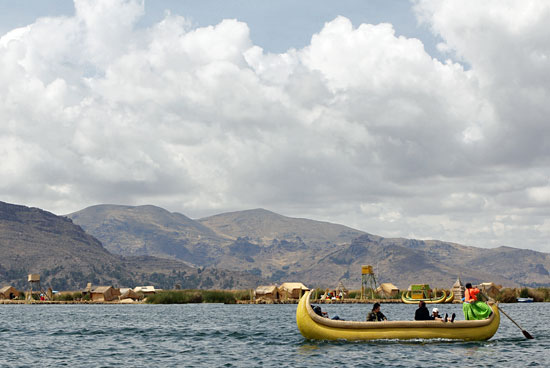 Het is een hard bestaan. Omdat ze in een vochtige omgeving wonen, hebben de meeste eilandbewoners tegen de tijd dat ze zestig zijn last van reuma. Volgens de gids wonen er zo’n 2.200 Aymara op de 200 drijvende eilanden. Ze komen alleen aan land om hun vangsten te ruilen voor etenswaren die ze zelf niet kunnen verbouwen.