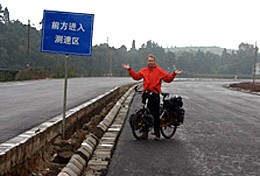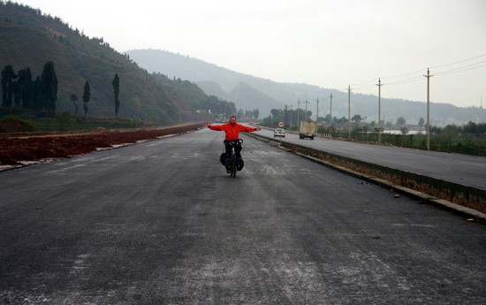 Eric heeft gelijk: het is ontzettend leuk om een land vanaf het vliegveld binnen te fietsen. Vooral als het een echt fietsland is, zoals China. De zeven kilometers worden er vijftien. Als het begint te schemeren baadt Kunming in en zee van licht van de vele lantarenpalen. De angst heeft inmiddels plaatsgemaakt voor plezier.