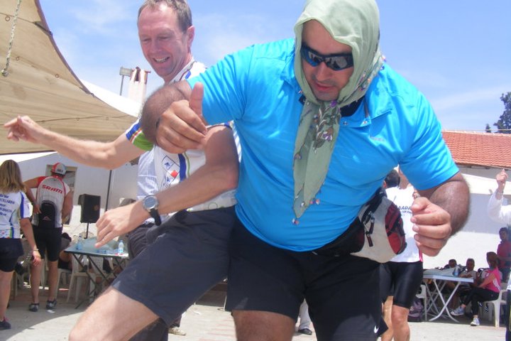 Klokslag negen uur staat David met zijn racefiets voor ons pension. Na dertig kilometer is het tempoverschil tussen David en Marijke al goed merkbaar. Het is duidelijk dat David gewend is alleen te fietsen, hij kijkt niet op of om. Ik blijf in de buurt van Marijke als hij uit het zicht verdwijnt. Het is wederom afzien, want de bergie-op, bergie-af-cyclus gaat nog immer door. Buiten adem wacht ik bovenaan een bult en giet wat lauw water in mijn gortdroge keel. Ik veeg het zoute zweet van mijn voorhoofd en klik mijn schoenen weer vast. Dan rollen we weer een eind naar beneden en kunnen even krachten verzamelen voor de volgende bult. Bij een temperatuur van boven de dertig graden blijft fietsen loodzwaar, ook al hebben we na drie maanden nog zo’n goede conditie opgebouwd.