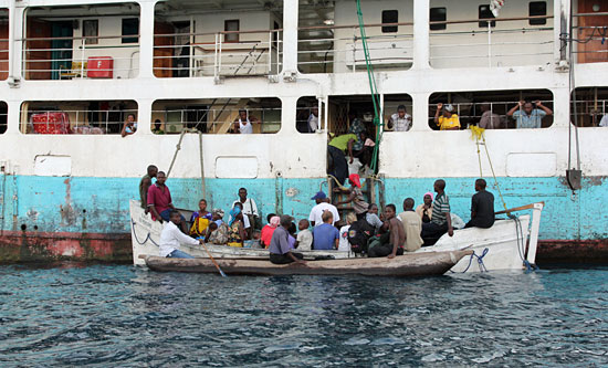 Zoals vaak in derde wereldlanden reist de lokale bevolking met enorm veel bagage, zoals eten of koopwaar, al dan niet levend. Zo ook op de Ilala. Een hoeveelheid kippen in manden zit knus tegen elkaar gepropt. Vogeltjes fladderen in krappe kooitjes. Vanuit gammele pendelbootjes worden grote balen rijst en mango’s het schip opgehesen. Onze fietsen vormen daarop geen uitzondering.