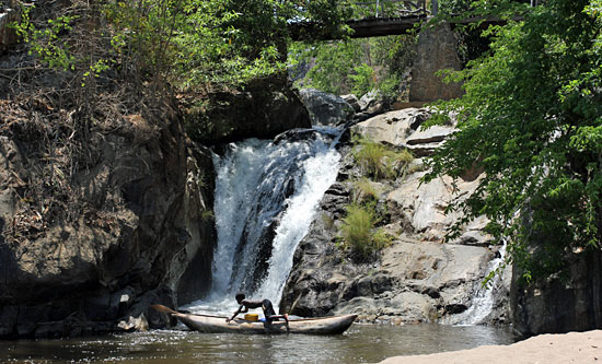 Km 47,00 T-splitsing met een smal onverhard weggetje; linksaf naar Liwonde National Park; pas op: veel lokale fietsers en kinderen die ”Give me money, give me pen, give me bottle„ roepen; zelf invulling aan geven hoe je daarmee om gaat; pas ook op voor Nederlandse vakantiefietsers!