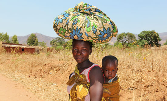 Als ik m’n fiets door het stof een steile berg op duw word ik ingehaald door een vrouw met een baby op haar rug en een pakket op haar hoofd. Ze begint een praatje met me. Hoe ik heet en waar ik vandaan kom. Ik vraag haar hetzelfde en tevens hoever het nog is naar de volgende plaats.