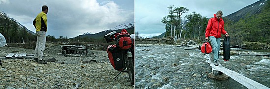 De weg van grind gaat over in het grind van een rivierbedding. Nergens is een brug. Ook geen pont of wat dan ook. En die zestig kilometer blijken er maar twintig te zijn. Het is alsof de Chilenen er alles aan willen doen om je van het idee af te brengen om naar Argentinië te gaan.*