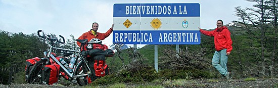 ‘Bienvenido a Argentina’, heet een bord ons welkom. Voor zover het kan, wordt de onverharde weg nog onverharder en we stuiteren alle kanten op, op weg naar een meanderende rivier. Het stuiteren stopt. De fietsen lopen vast in het mulle grind en we duwen ze voor ons uit. Iets verder zien we al de douanegebouwen van de Argentijnen.