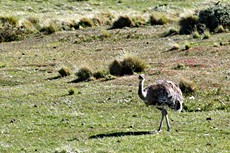 Een nandu is een lastige vogel om te fotograferen. Als Carla stopt om de telelens te pakken, loopt hij tergend langzaam van haar weg. Tegen de tijd dat zij alles paraat heeft, voldoet zelfs de 300 mm lens niet om de nandu groot in beeld te krijgen.