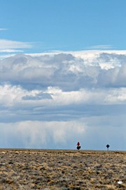 Ik heb er nooit zo’n erg in waar de wind vandaan komt. Ik duw m’n kop naar beneden en trap stevig door. Carla had mij al voor Patagonië gewaarschuwd: “Daar kom je wel te weten hoe hard de wind kan zijn.”