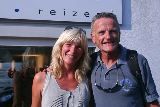 Greg and Anita from Australia with their Travelmasters 2.9. Expereinced as they are, it is no surprise they chose a beltdrive, Rohloff hub and SON hub dynamo. First they will fare the sees with the Europe vessel and onwards they will ride their bikes.